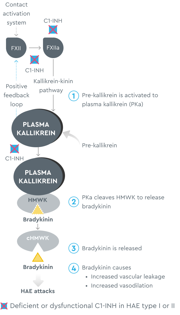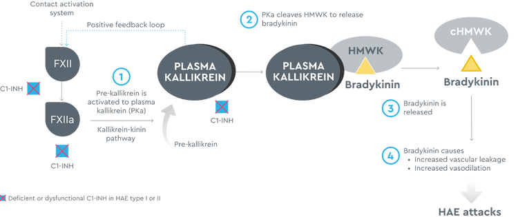 TAKHZYRO provides targeted inhibition of plasma kallikrein, a critical regulator of bradykinin, known to cause HAE attacks1